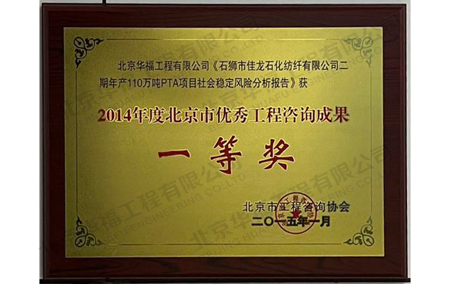 佳龍石化項目工程咨詢成果一等獎